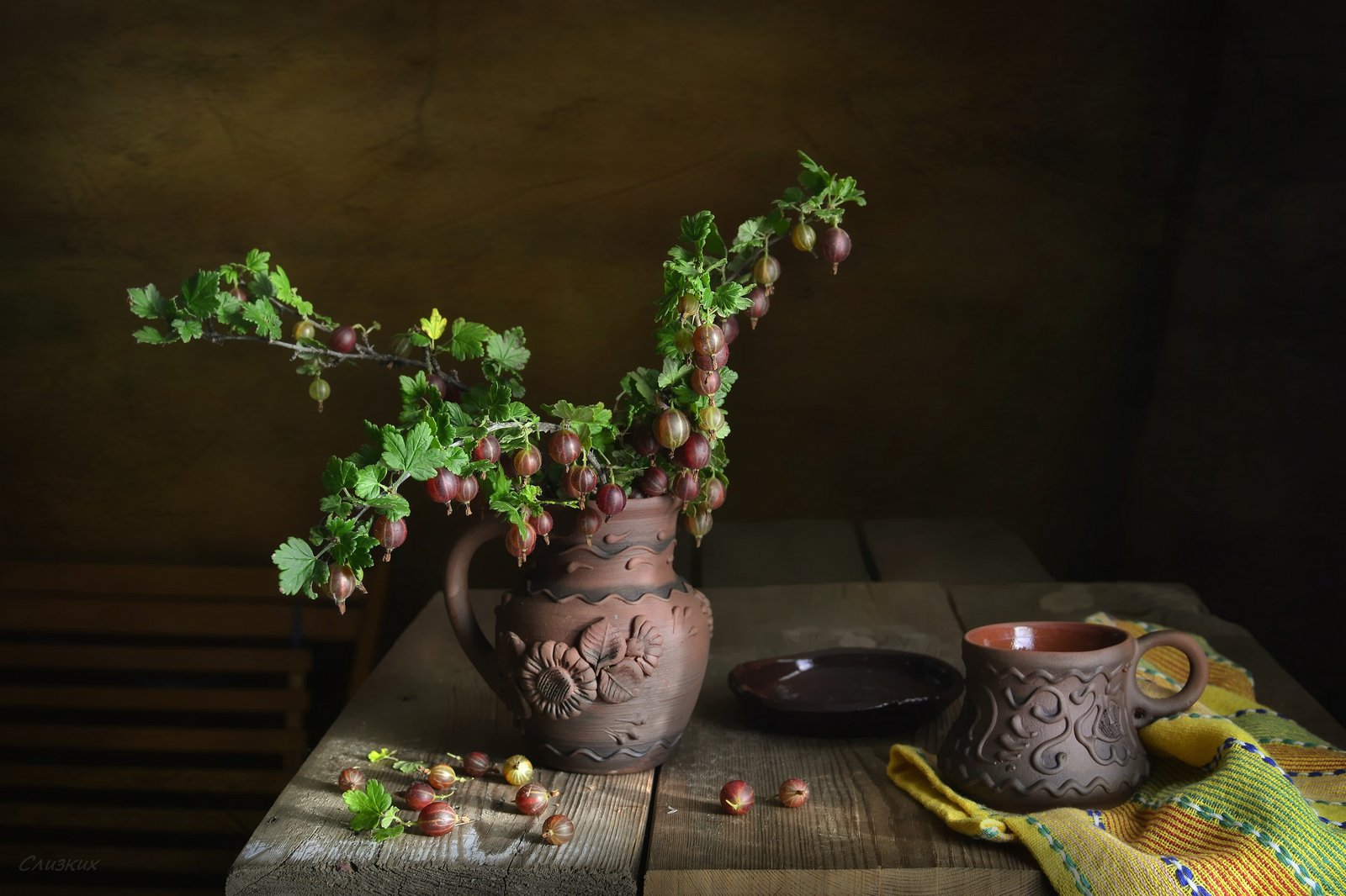 натюрморт,композиция,свет,лето,кувшин,крыжовник, Инаида