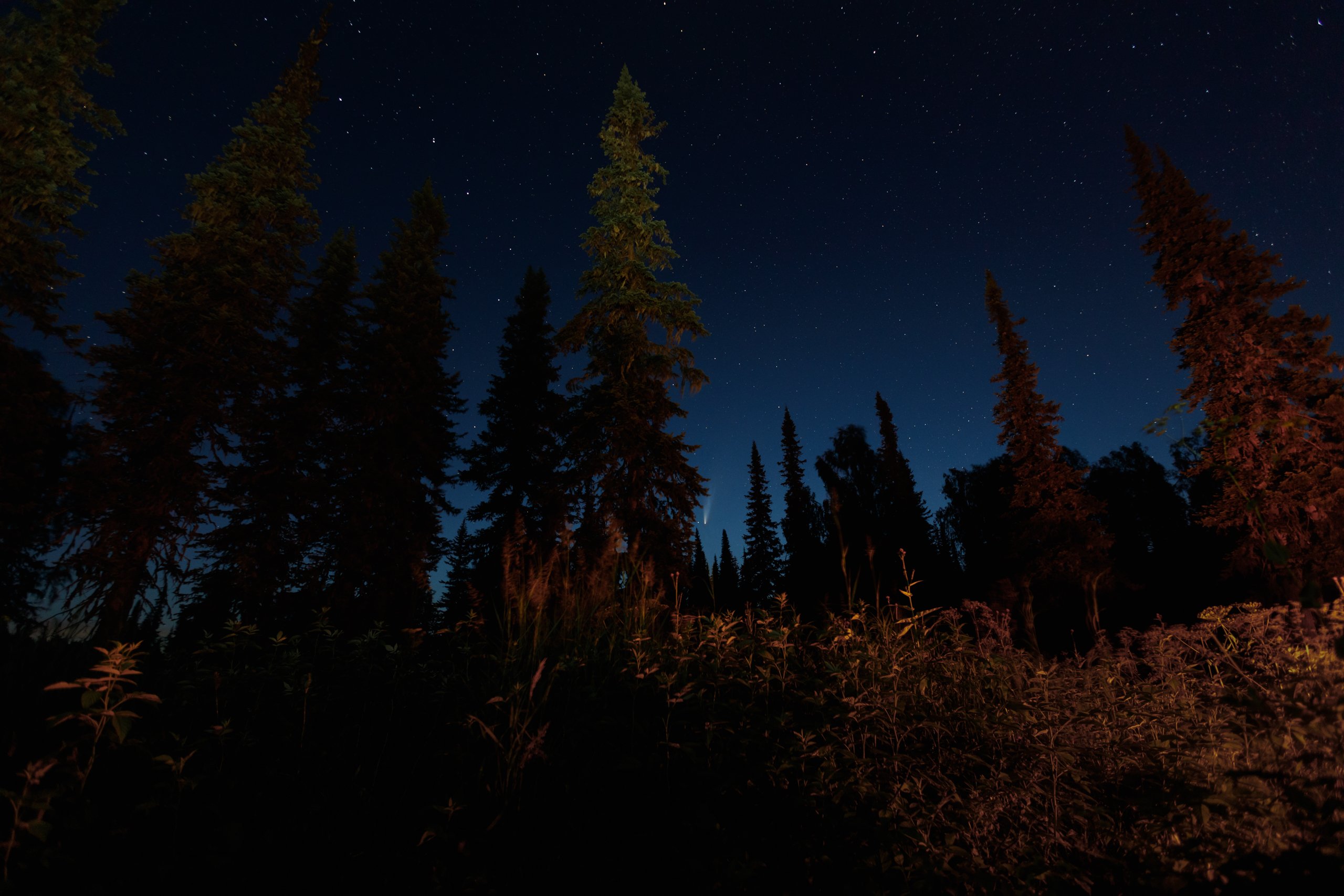 комета, пейзаж, ночь, звезды, тайга, лес, природа, звездное небо, Станислав Попов
