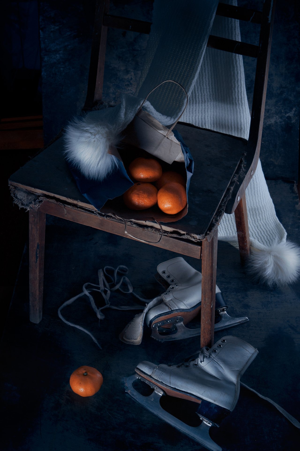 мандарины, коньки, шарф, натюрморт, зима , Наталья Голубева