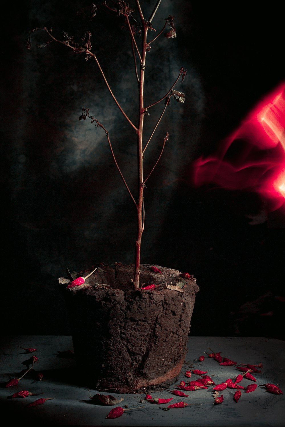 острый перец, засохшее, земля, растение, куст, натюрморт, красный,, Наталья Голубева
