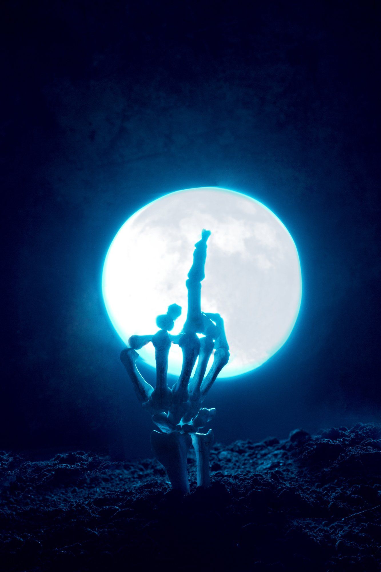 скелет,  луна,  ночь,  земля, рука, Наталья Голубева
