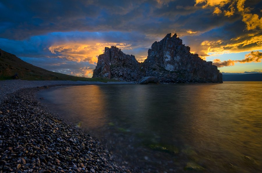 А пока предлагаю начать знакомится с красотами Байкала. Первое, что я бы хотел показать это скала Шаманка, находится она на острове Ольхон. И по праву является его центром и визитной карточкой. Нигде на Ольхоне невозможно увидеть такое огромное количество туристов как на Шаманке. И это понятно, скала не просто красивый природный объект, но и священное место для местных жителей. А удачное расположение вблизи поселка Хужир делает ее еще более привлекательной и очень доступной. К примеру я снимал гостевой домик в пяти минутах ходьбы от нее. Так, что если собираетесь на Ольхон, скала обязательна к посещению.