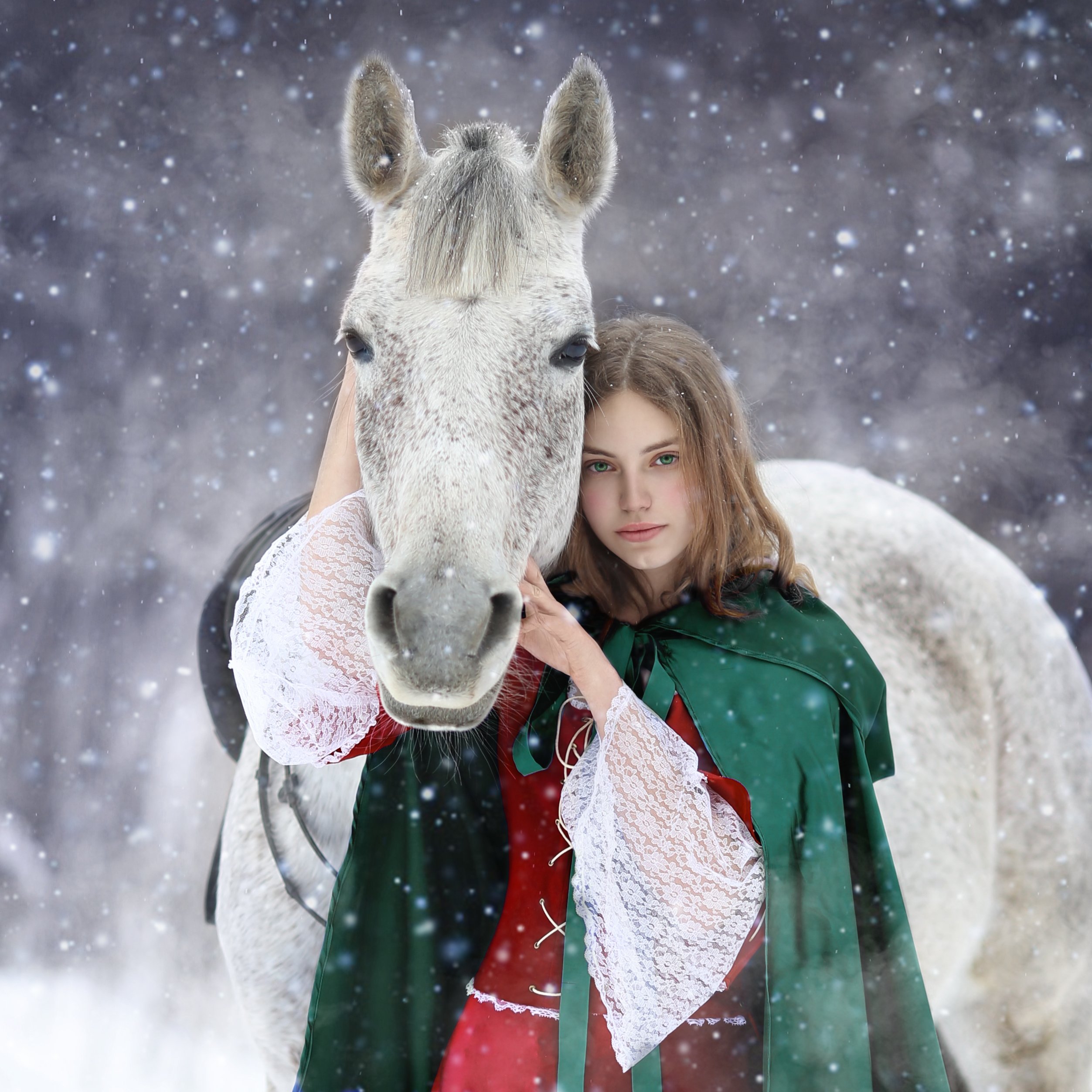 сказка, сказочное фото, лошадь, арабская чистокровная, девушка с лошадью, girl with a horse, horse, зима, зимняя сказка, winter fairy tale, Ирина Голубятникова