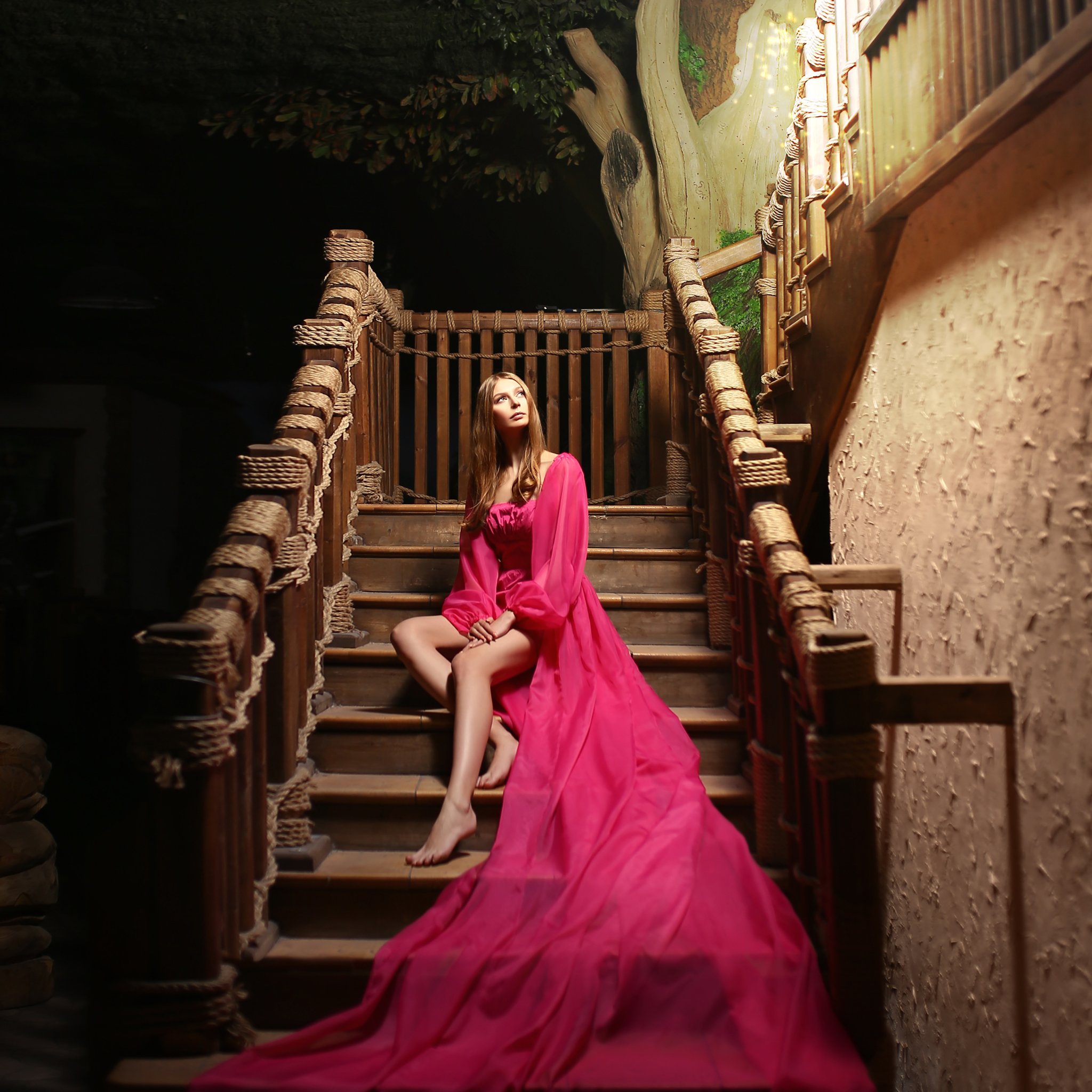 розовое платье, мотыльки, светлячки, девушка на лестнице, сказочный дом, Ирина Голубятникова