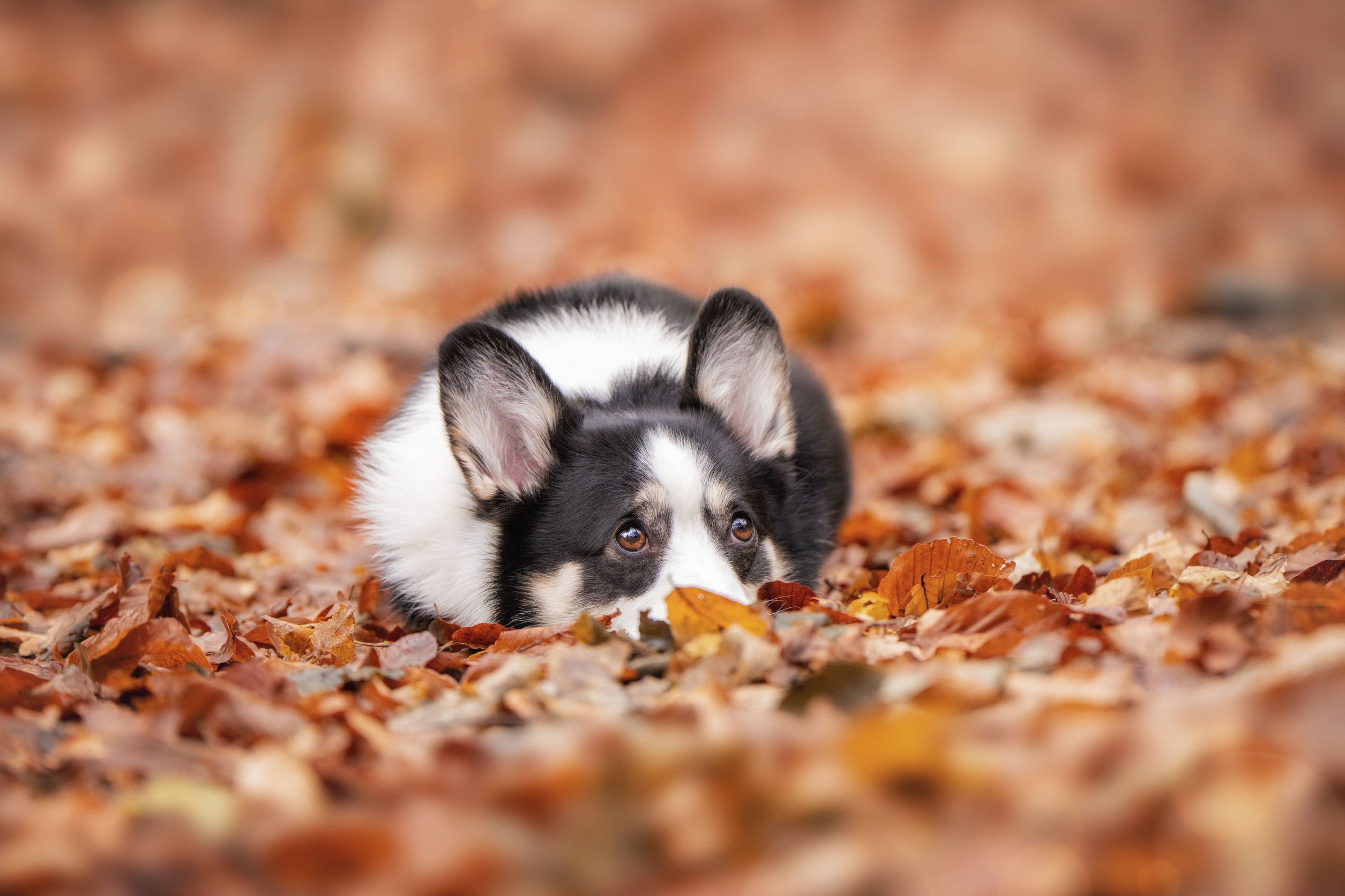 Милый кадр, Ирина! 🐾 Пёстрый малыш в листьях — как будто сам осенью влюбился. Глаза такие выразительные, а фон мягко размыт, чтобы всё внимание было на нём. Очень уютно и естественно.