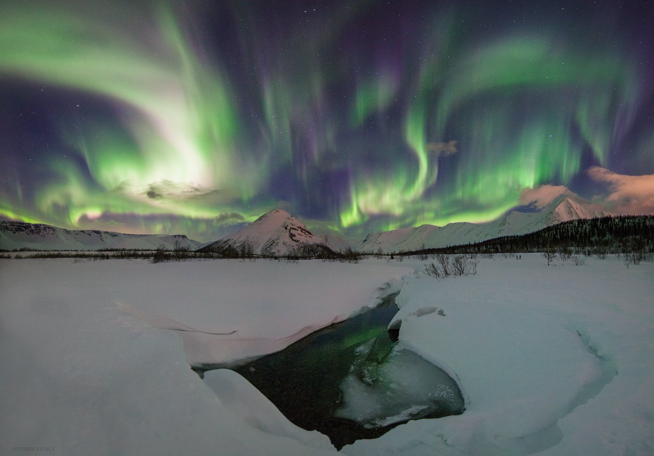 пейзаж,сияние,панорама,свет,река,горы,хибины,россия,ночь,красиво, Виталий Истомин