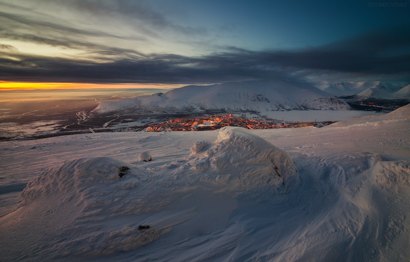 пейзаж,кировск,хибиногорск,россия,закат,снег,зима,небо,цвет,свет,город,сумерки, Виталий Истомин