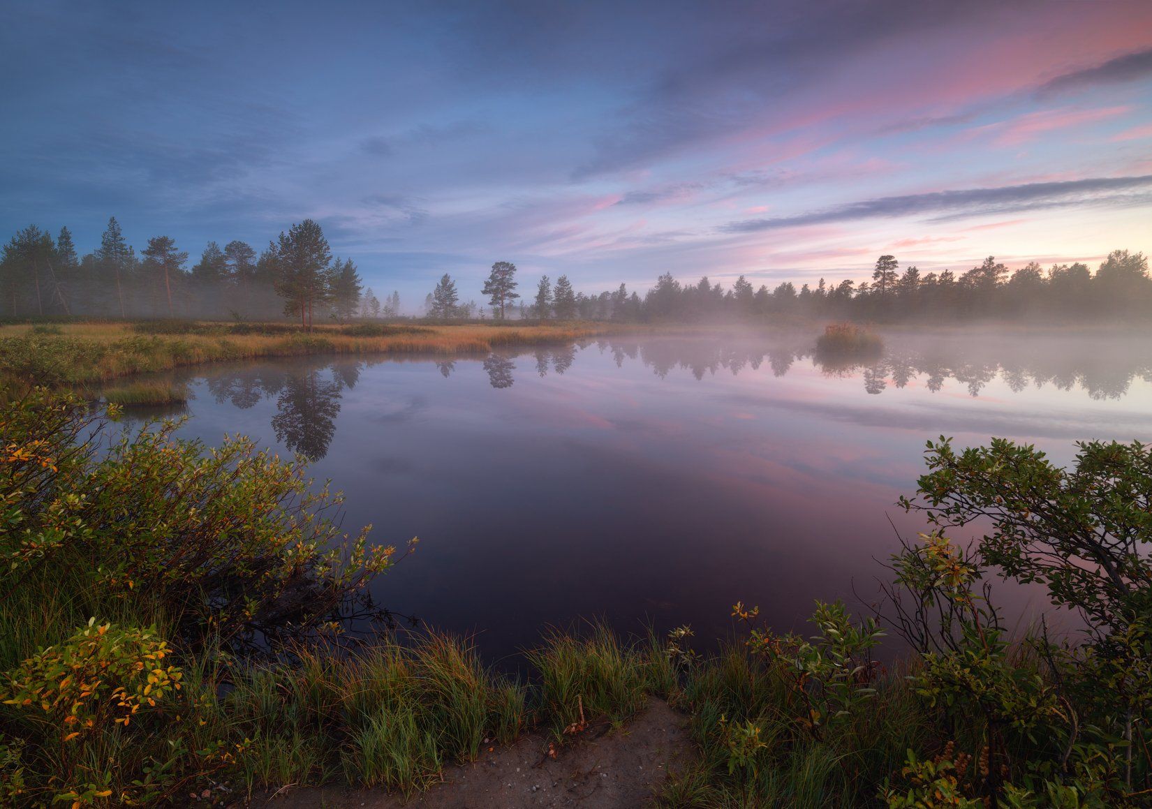 пейзаж,туман,россия,хибины,отражение,лес,озеро,облака, Виталий Истомин