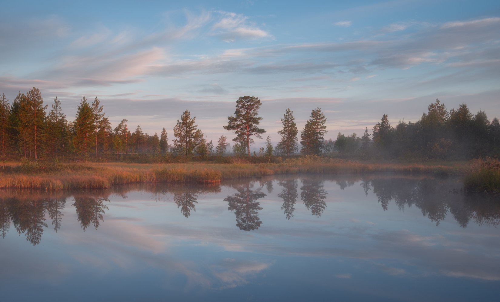 пейзаж,рассвет,отражение,осень,кольский,север,озеро,туман, Виталий Истомин