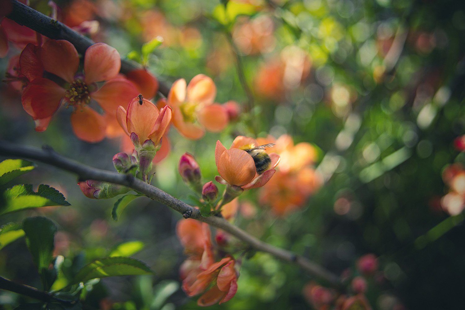 шмель, айва, цветет, цветение, весна, цветы, насекомые, свет, боке, Игорь Токарев