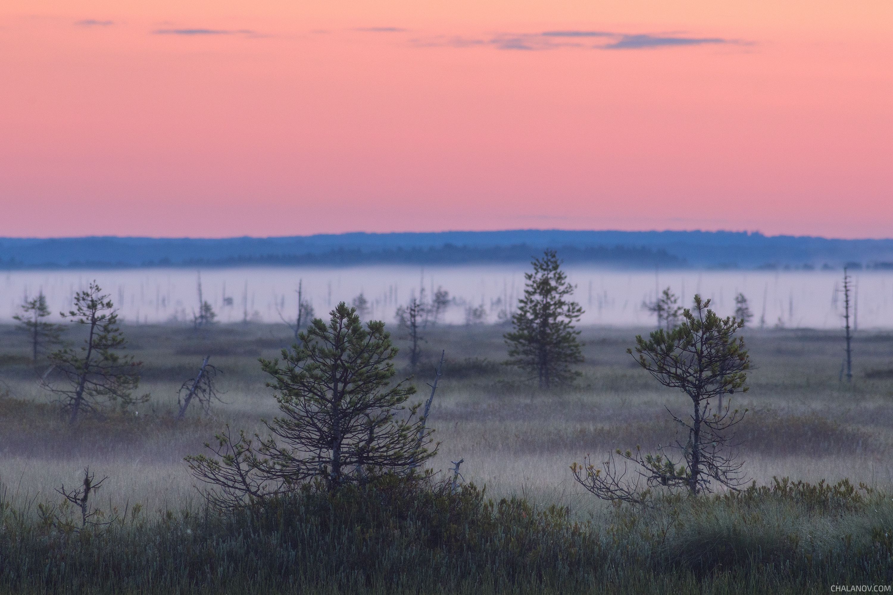 пейзаж, рассвет, сосны, туман, болото, север, landscape, sunrise, swamp, north, pines, fog, Иван Чаланов