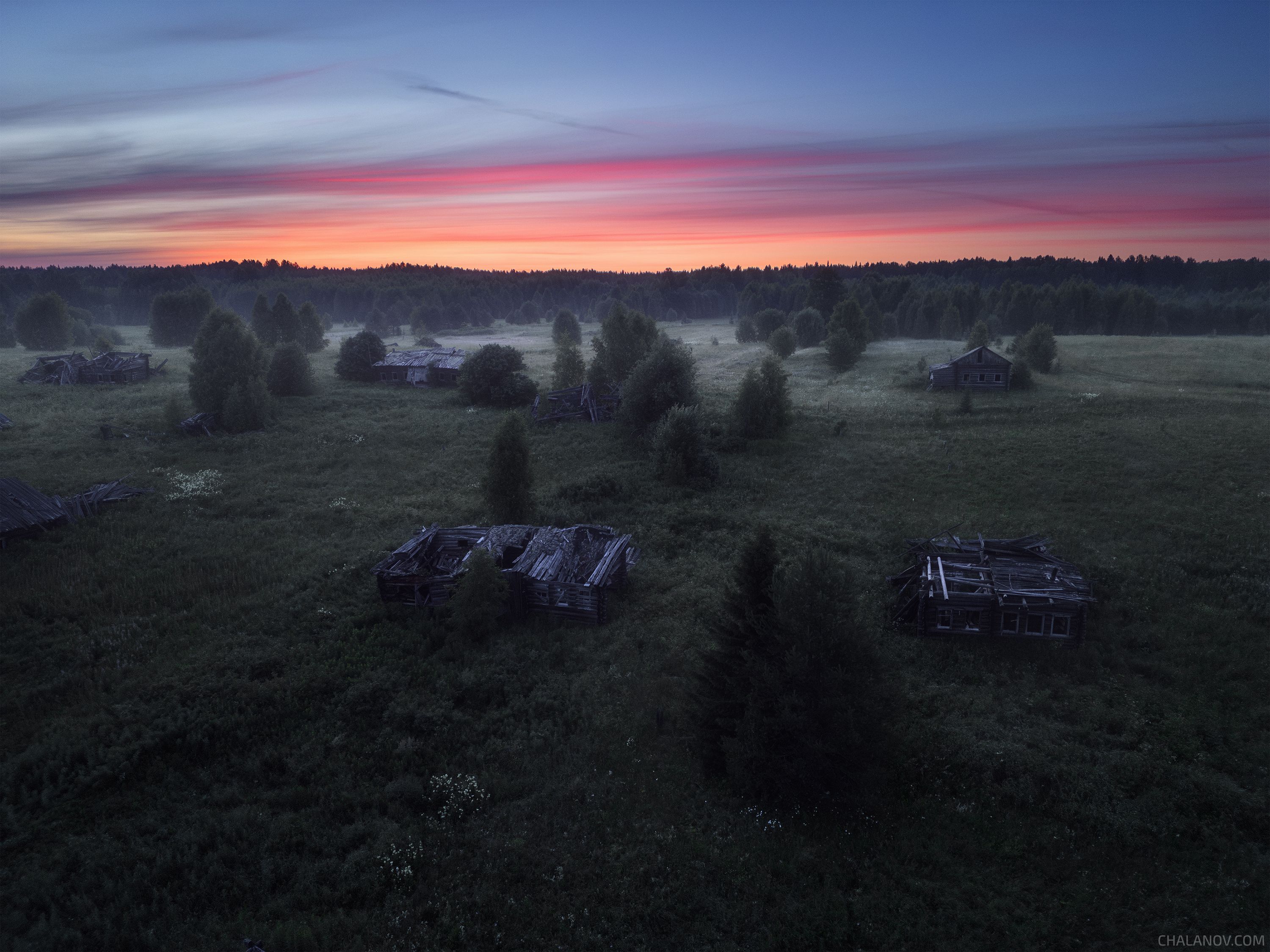пейзаж, природа, деревня, рассвет, туман, дрон, Иван Чаланов