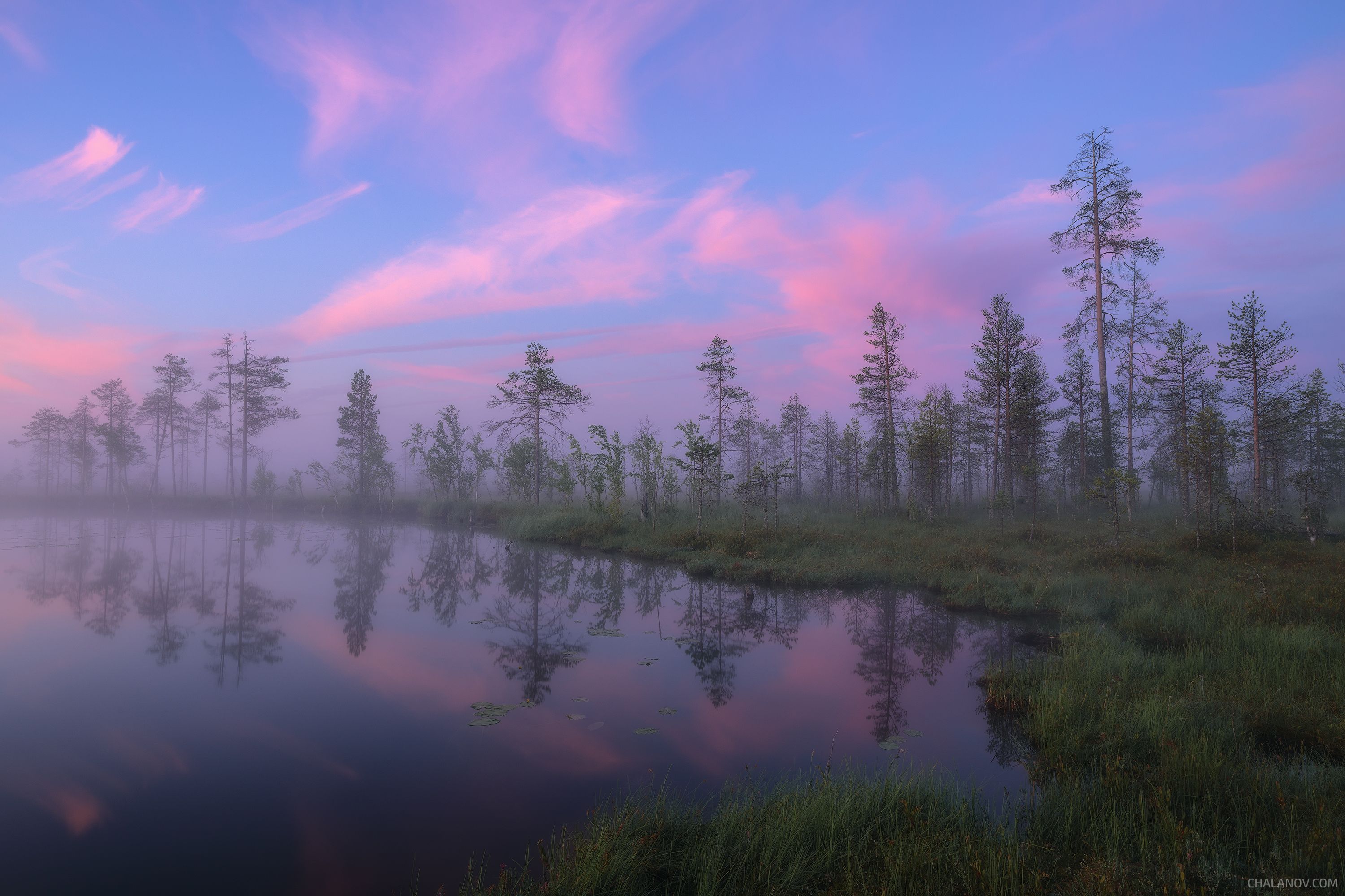 пейзаж, утро, облака, рассвет, озеро, туман, север, коми, дрон, аэросъёмка, Иван Чаланов