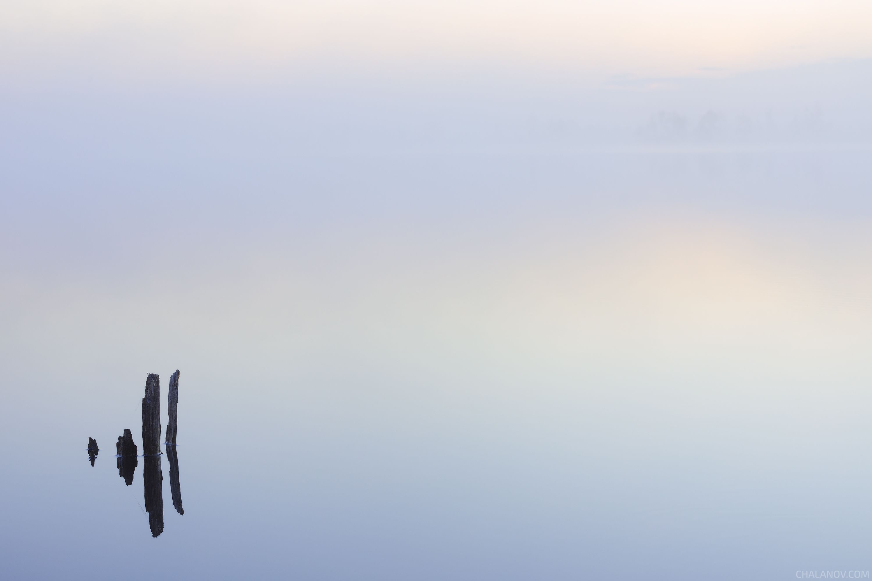 пейзаж, рассвет, озеро, туман, облака, минимализм, Иван Чаланов