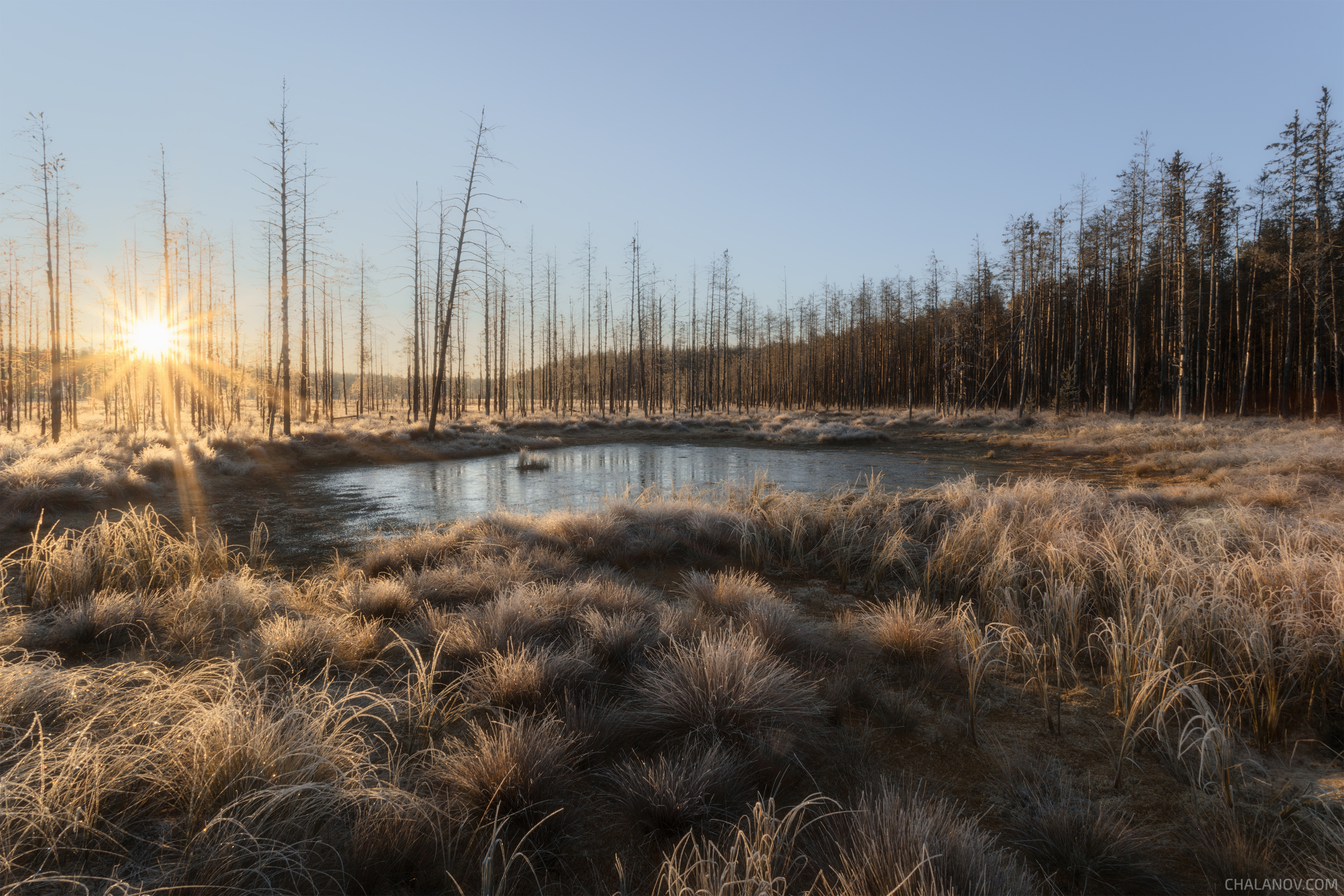 Иван, красота — это точно. Снимок получился очень атмосферным, особенно как солнце прорезает эти мёрзлые стебли и отражается в воде. Какой у тебя был момент, когда ты понял, что это тот самый кадр? И, кстати, насколько холодно было? Видно, что иней лежит плотно — значит, утро было морозное.