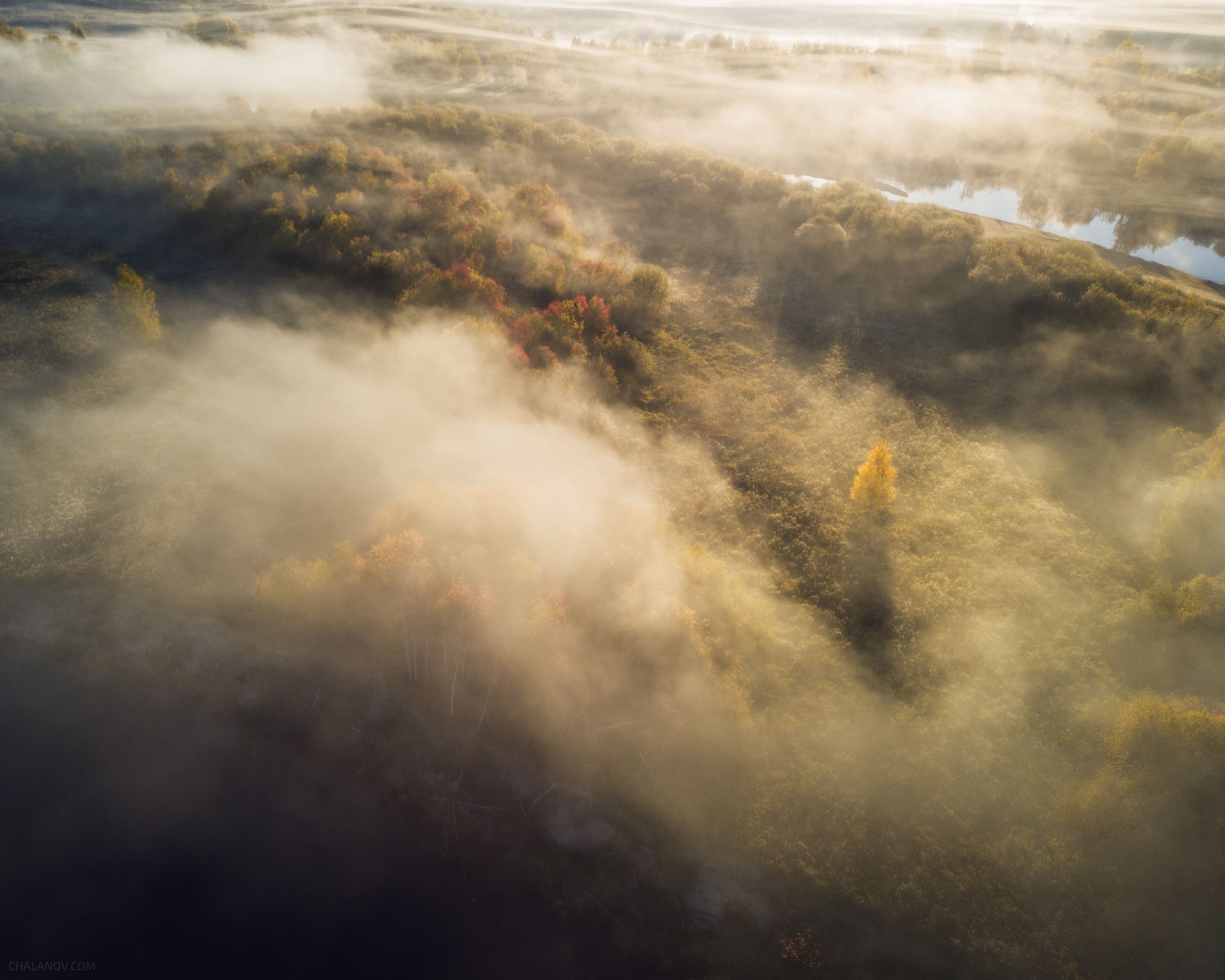 Осенний сплав по реке. Волшебное утро после ночных заморозков. Вода в чайнике покрылась ледяной коркой, а выходить из теплого спальника и палатки совсем не хотелось. Все луга покрылись инеем, и теплое осеннее солнце образовало целые облака из тумана.