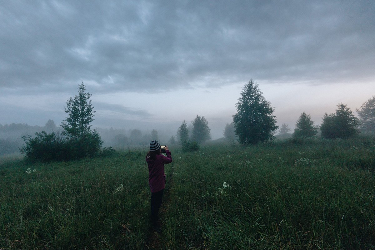 туман, деревня, вечер, облака, тишина, человек, женщина, девушка, фотограф, пейзаж, лес, поле, луг, темное, темнота,, Иван Клейн