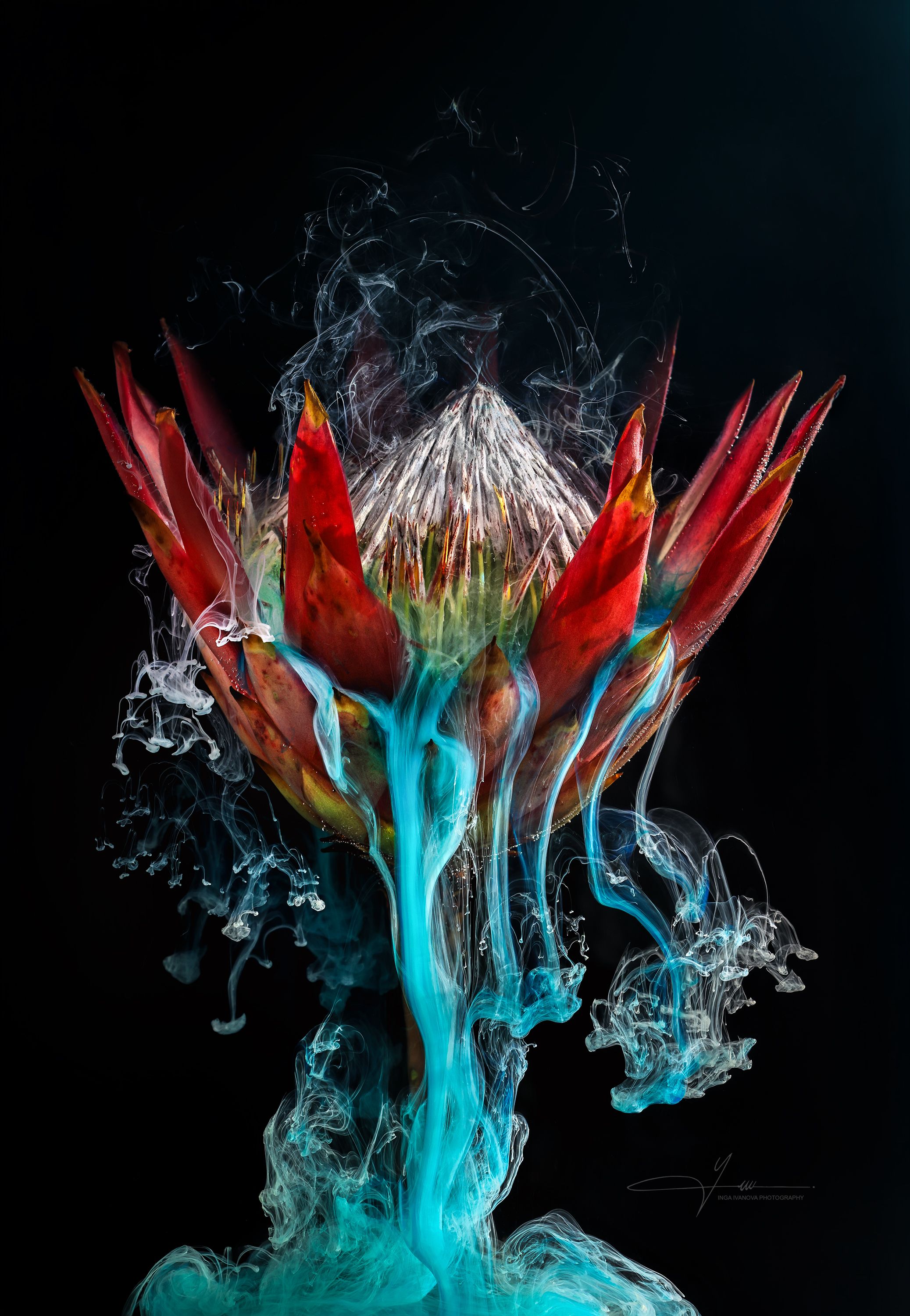 Inga, Вы снова удивляете — цветок как будто оживает в дыму и цвете. Синий поток особенно выразителен, словно жизнь течёт изнутри наружу. Красиво, мощно, нежно одновременно.