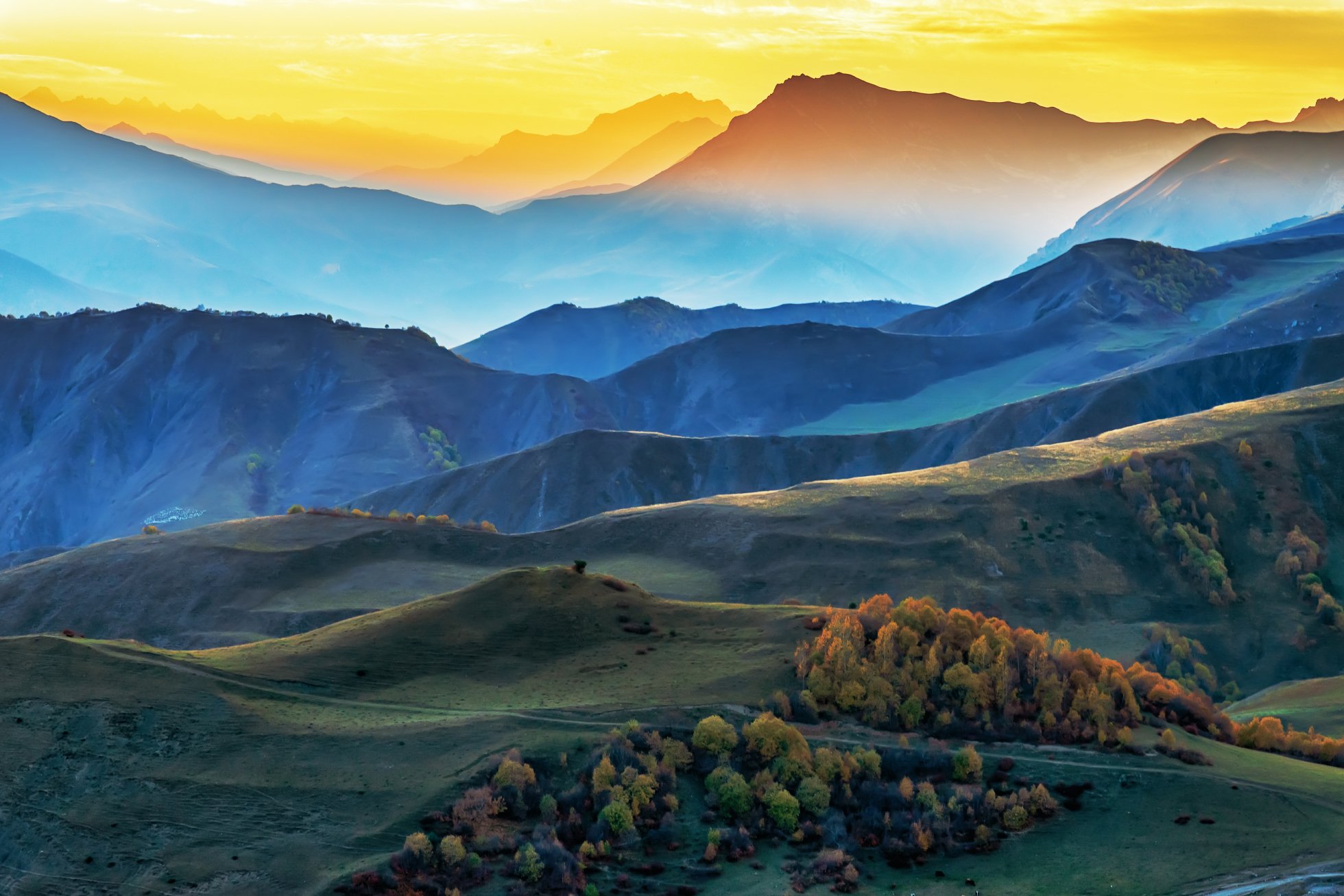 Ингушетия, горы, закат, осень, Владимир Иванов