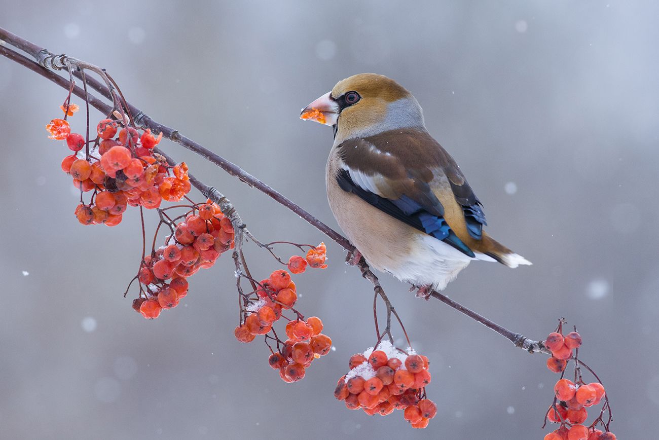 пасмурно,зима,рябина,дубонос,завтрак, Иван