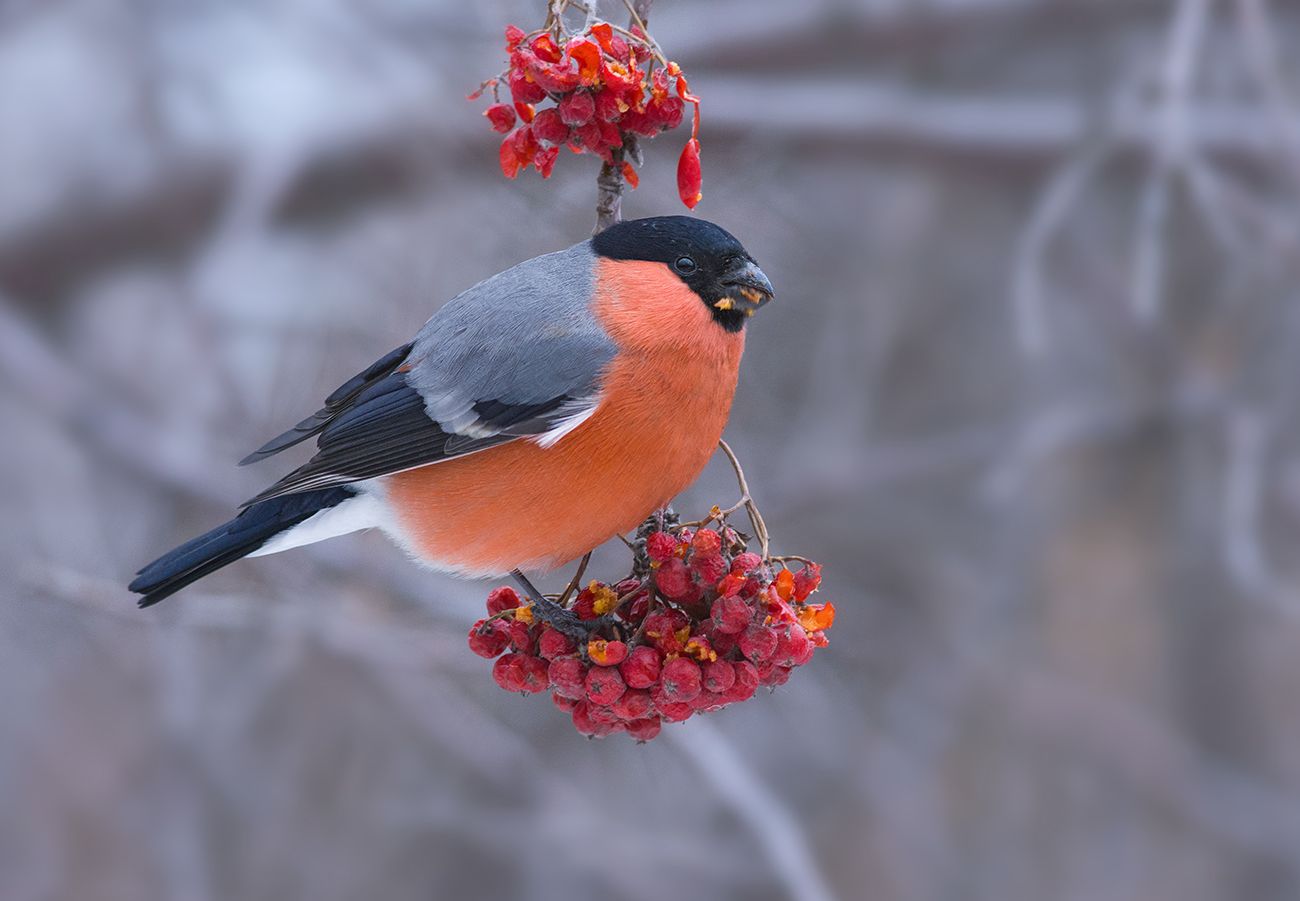 снегирь,самец,пасмурно,декабрь,рябина, Иван