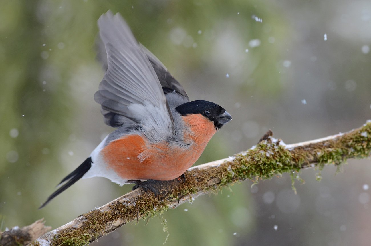 снегирь,самец,старт,снег,бор, Иван