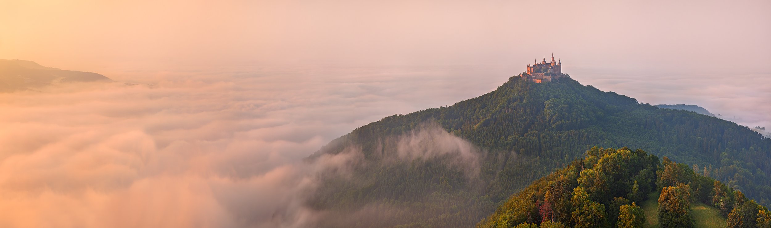 Эта старая панорама, снята 6 лет назад, в июле 2012 Замок Гогенцоллерн - "замок парящий в облаках", как называют его сами немцы. В этом году в октябре, в рамках нашего фотопутешествия мы вновь отправимся к этому великолепному замку. Осень - сезон туманов и мы наверняка на рассвете, как и подобает, застанем его "парящим в облаках".