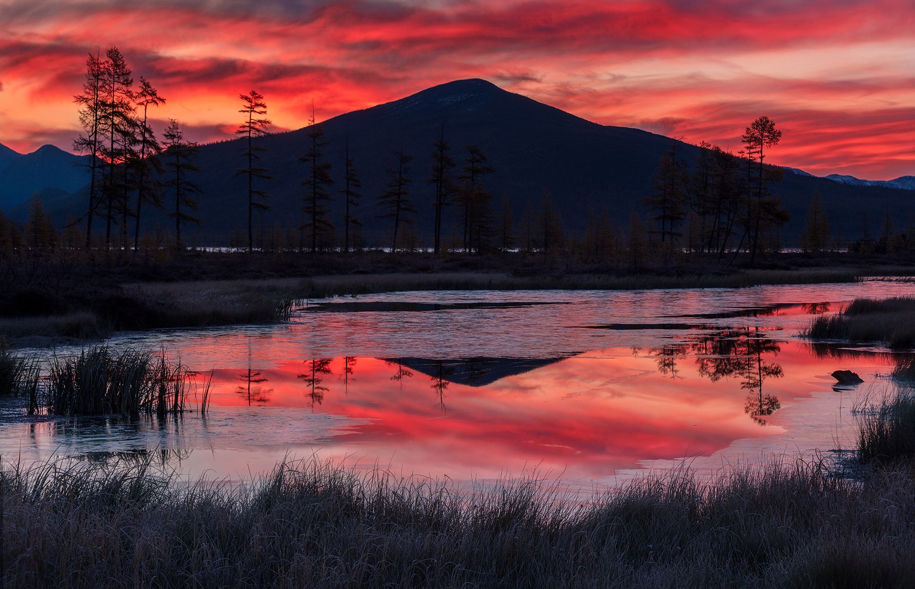 по утру, совершенно неожиданно, восток вдруг вспыхнул шикарным малиновым светом, он и сделал этот кадр ;)