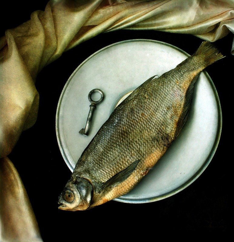Все равно не улавливаю. Если вы сопоставляете два выражения, то ассоциация не уловима, поскольку рыба совсем даже не плавает. Хотя может я просто не разбираюсь в символике натюрмортов (если она есть)