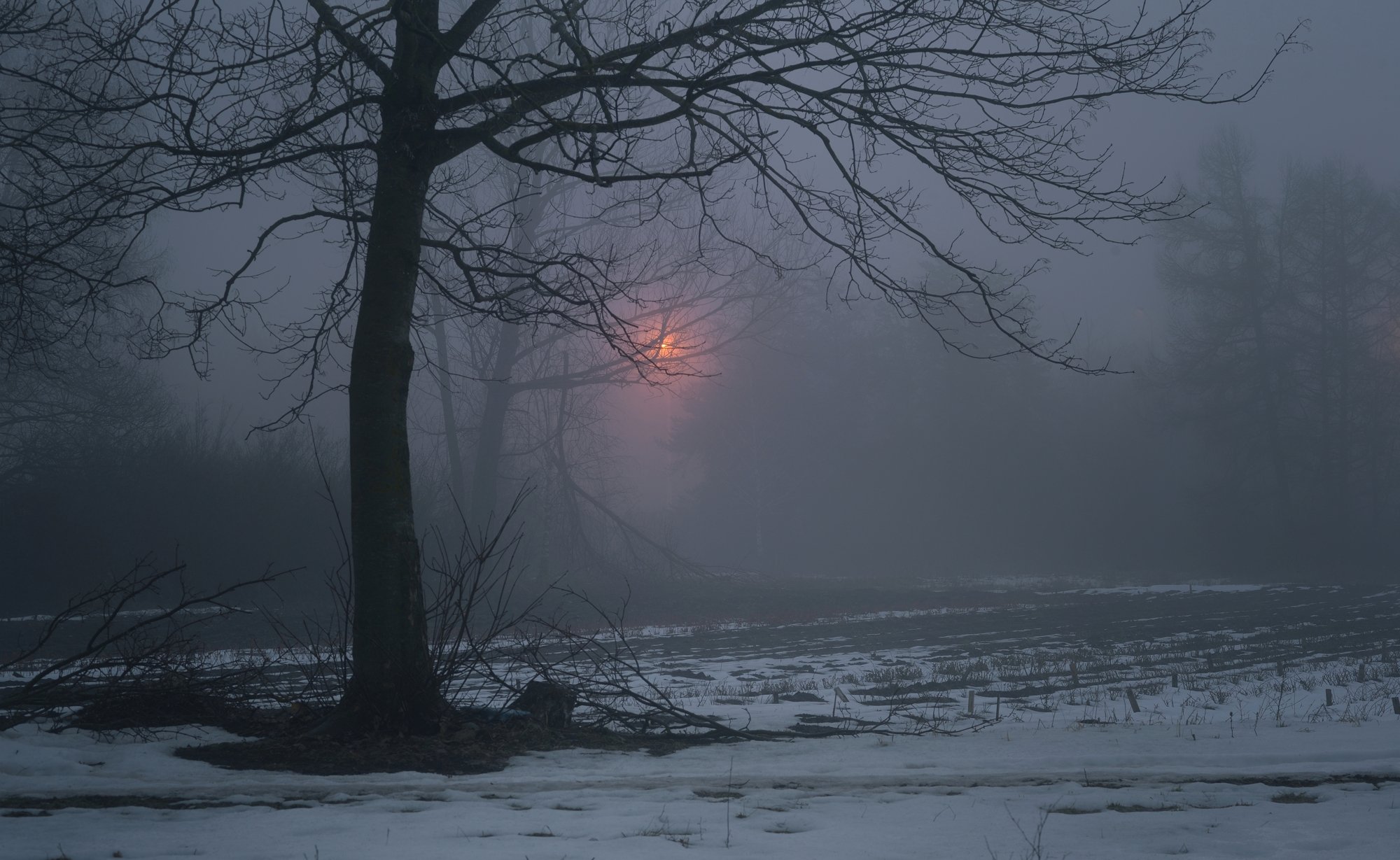 зима лес снег ночь туман, Александр Жарников