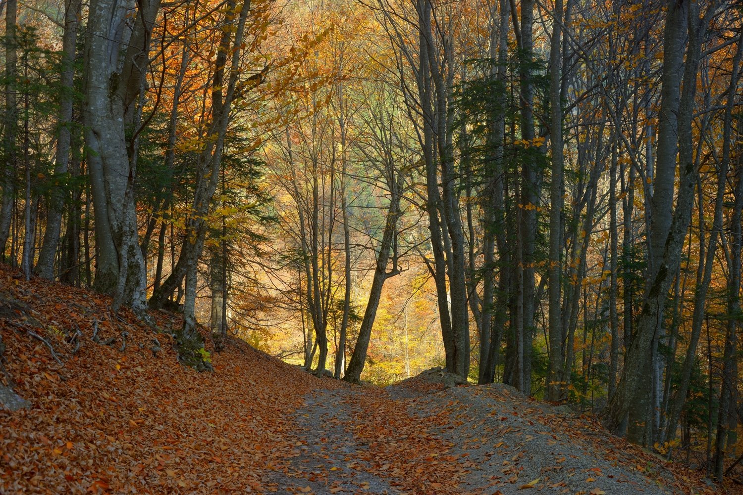 горы кавказ осень лес бук дорога, Александр Жарников