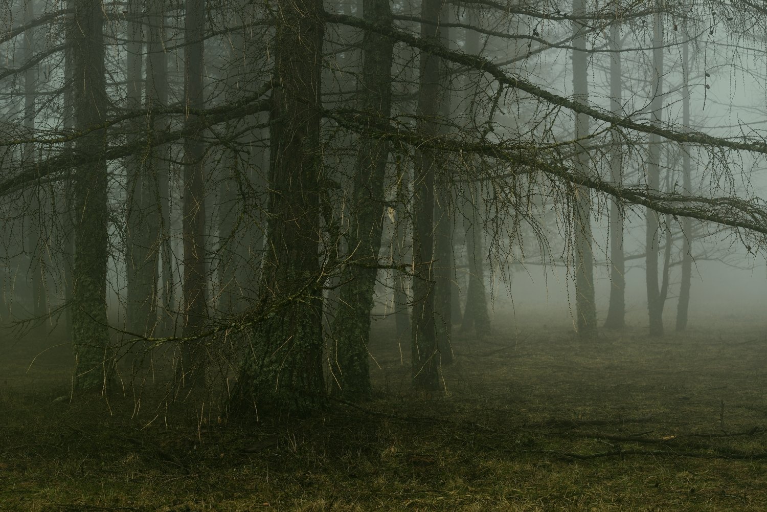 зима утро туман лиственница, Александр Жарников