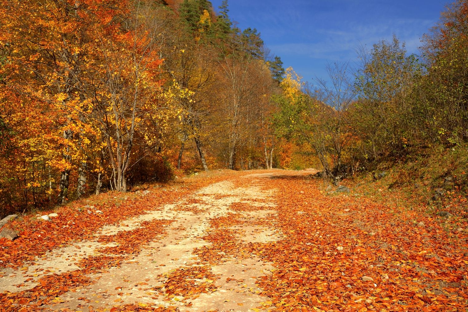 осень, листва, утро, лес, дорога, Александр Жарников