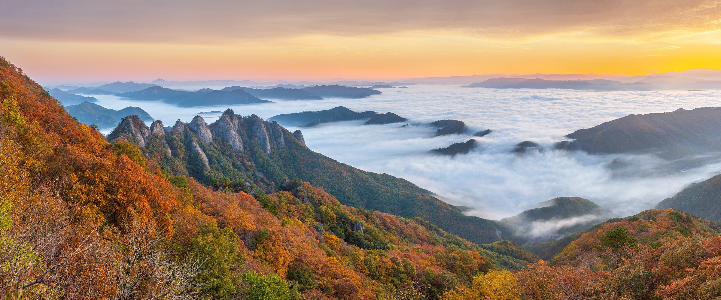 sea of clouds, autumn, clouds, mountain, korea, rock formation, sunrise, Jaeyoun Ryu