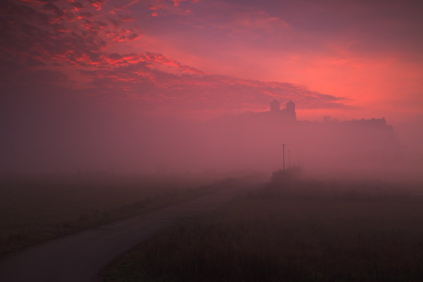 monastery, morning, sunrise, clouds, sky, mist, mood, tyniec, road, light, Jacek Lisiewicz