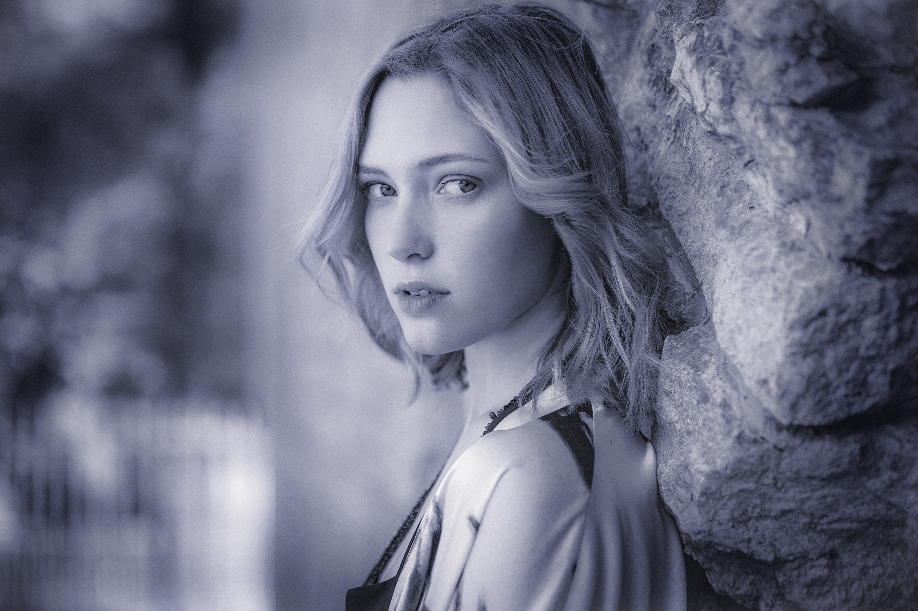 Вы уловили интересный контраст — твёрдость камня и мягкость образа. Глаза передают внутреннюю сосредоточенность, а цветовая палитра придаёт снимку почти монументальность. Поза естественна, но с намёком на сдержанную грацию. Можно было бы чуть больше света на лице — тогда детали выглядели бы точнее.