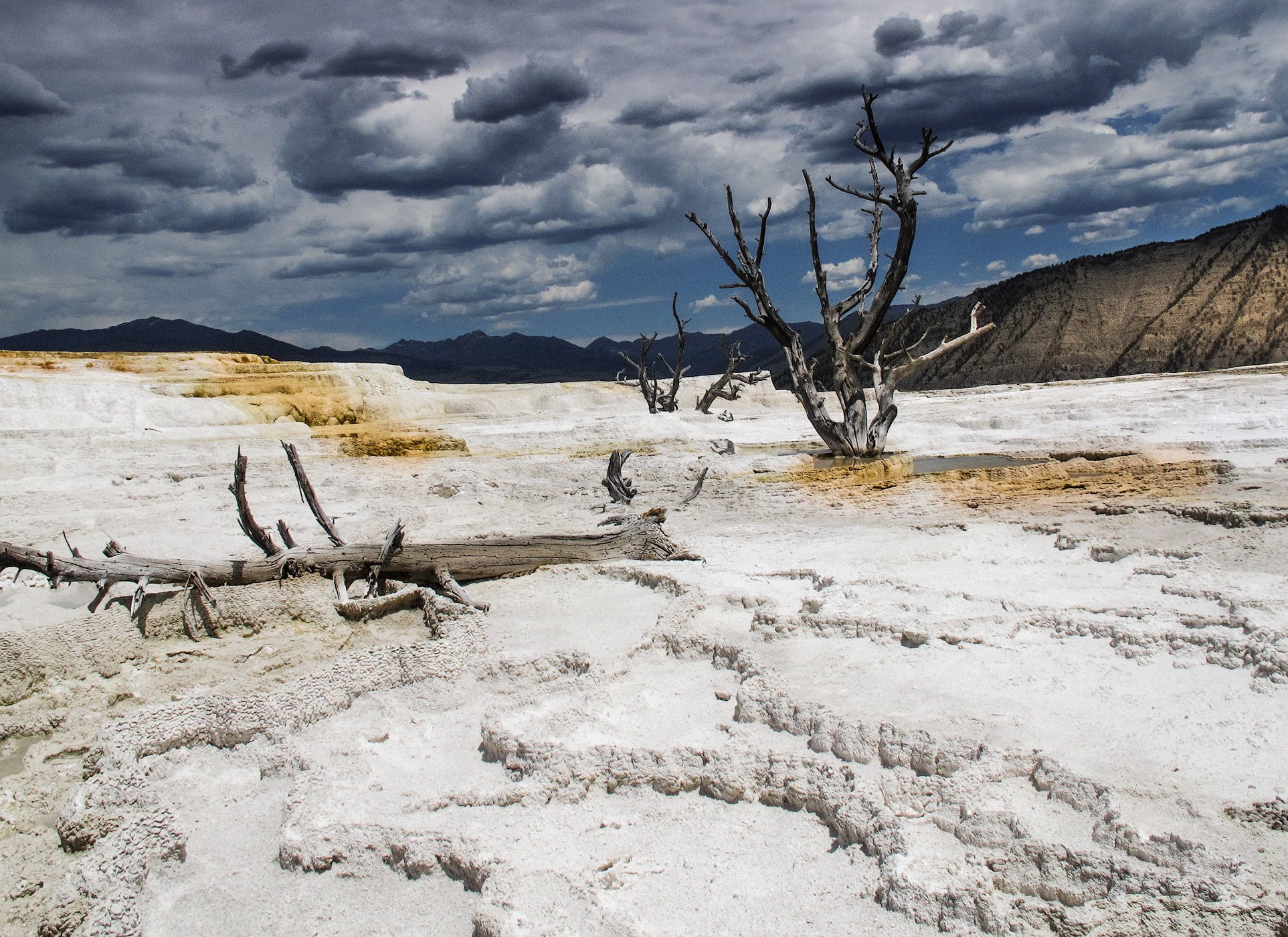 Горячая вода - продукт вулканической деятельности пробила себе дорогу через вершину холма покрыв все солями кальция.