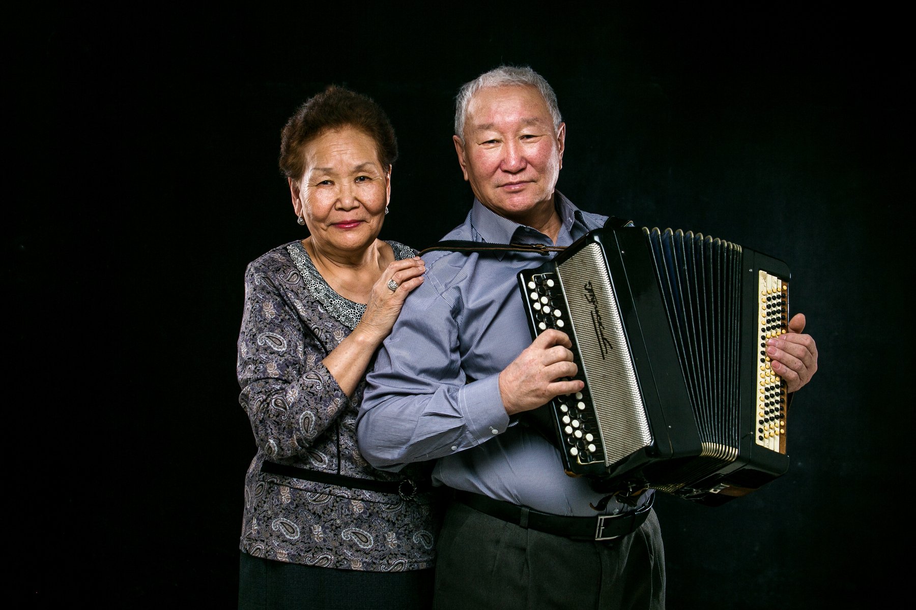 В этом году они отмечают золотую свадьбу . На фото запечатлены с символом их счастливой семьи -баяном. Этот баян Владимир купил на свои первые заработанные деньги ещё будучи ребёнком. В молодости играл на нем в сельском клубе на танцах , где и встретил свою любимую жену , а спустя 2 года сделал предложение руки и сердца . Вырастили и воспитали четырёх сыновей , имеют 11 внуков и 2 правнука