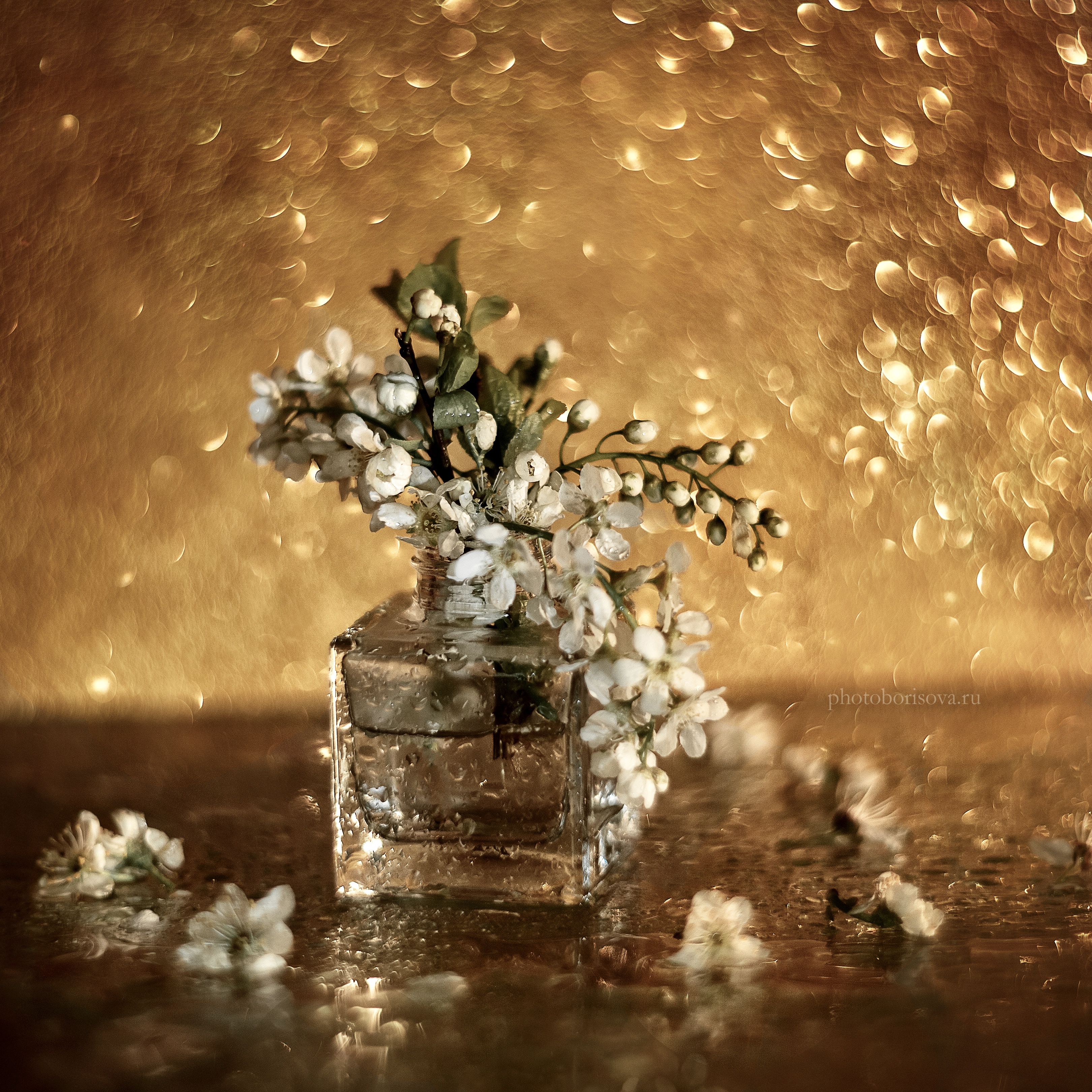Красиво и нежно, Юлия. Свет и боке создают атмосферу уюта, а цветы в стекле — как будто застыл момент весны. Особенно приятно, как отражение и падающие лепестки добавляют глубины.
