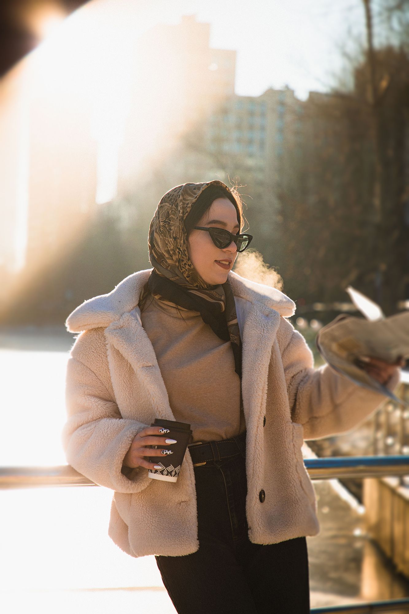 Портрет, фотосессия, зима, солнце, кофе, газета, стиль, Башкатова Юлия