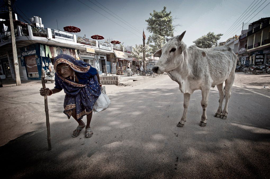 Animal, Animals, Asia, Cow, India, People, Portrait, Sleepwalker, Woman, Women, Tomek Jungowski