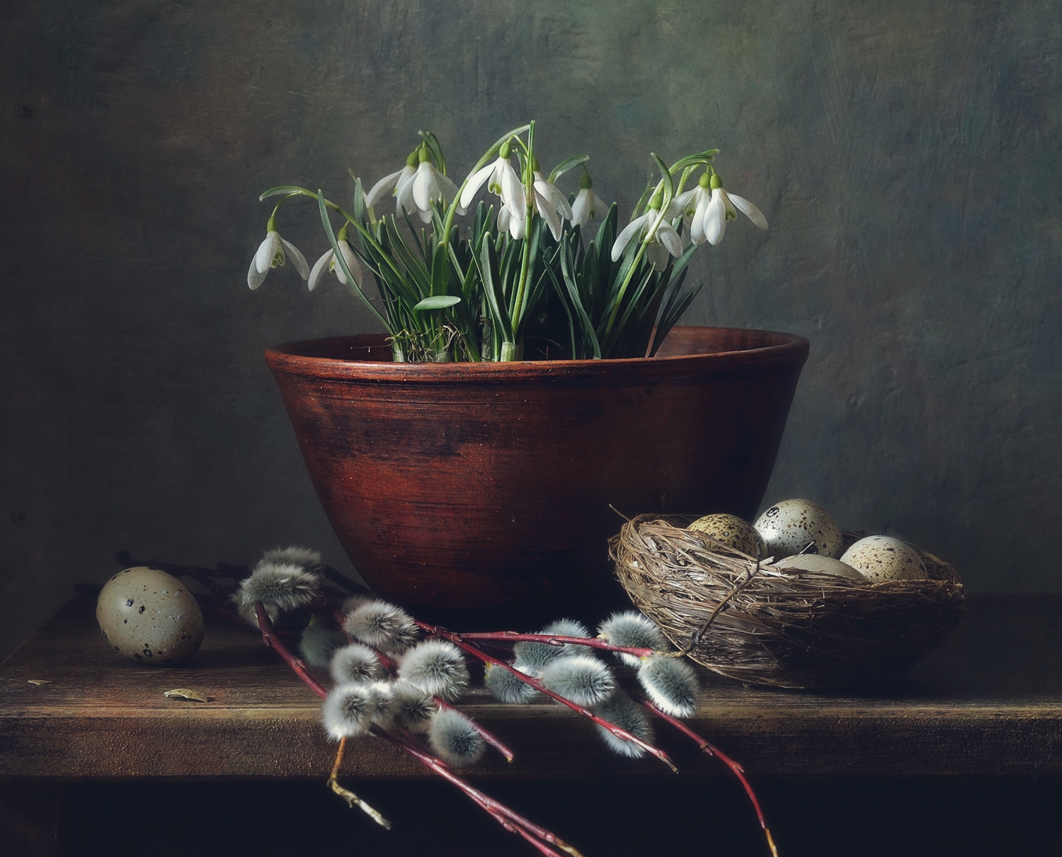 натюрморт, весна, подснежник, верба, яйца, Наталия К