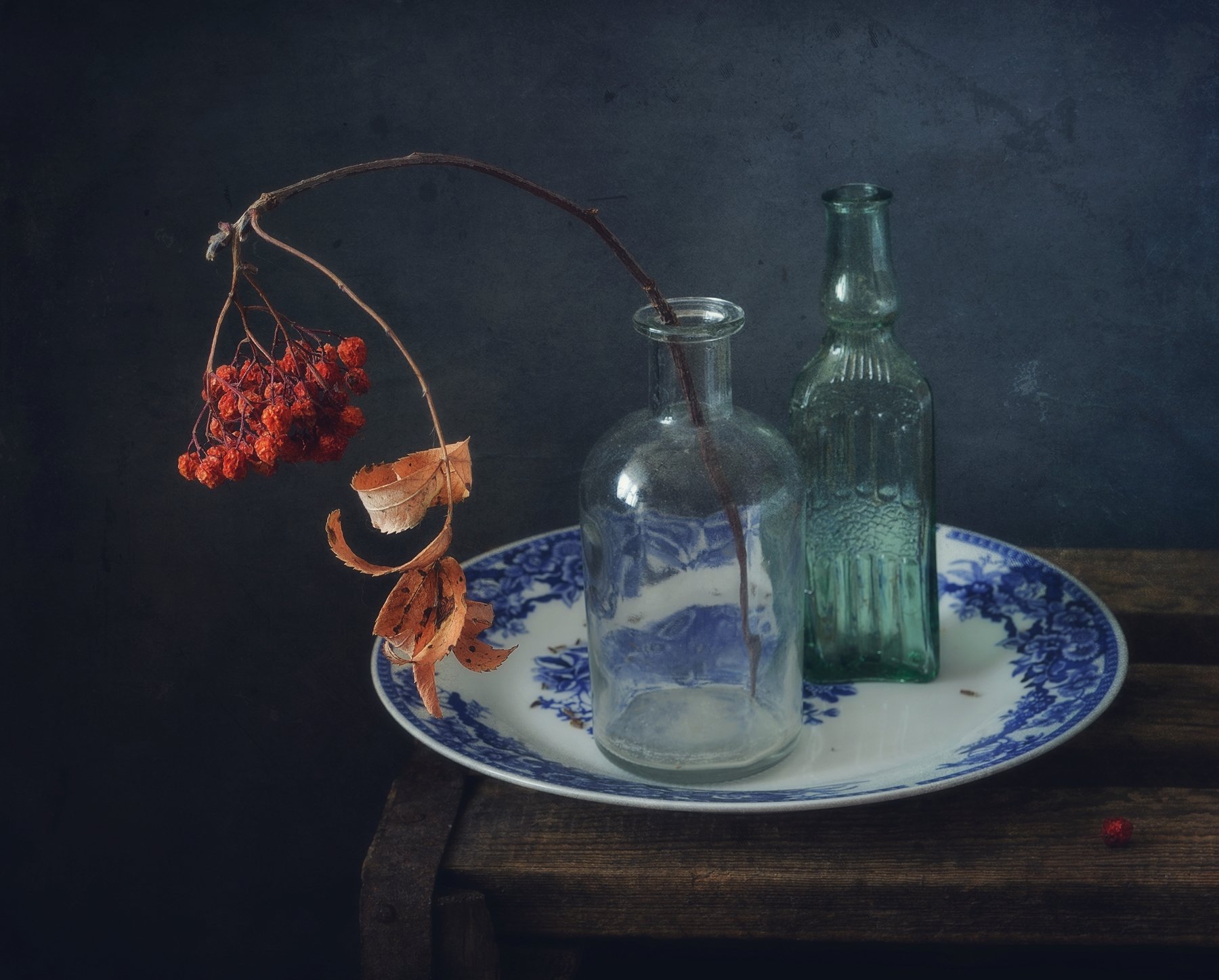 натюрморт,зима,рябина,бутылки,  Наталия К