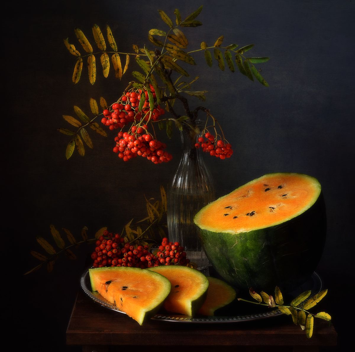 натюрморт,композиция,арбуз,рябина, Наталия К