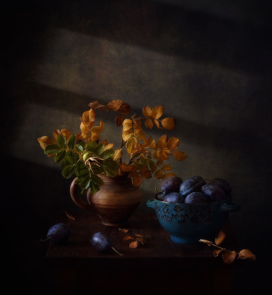 натюрморт,композиция,осень,сливы,шиповник, Наталия К