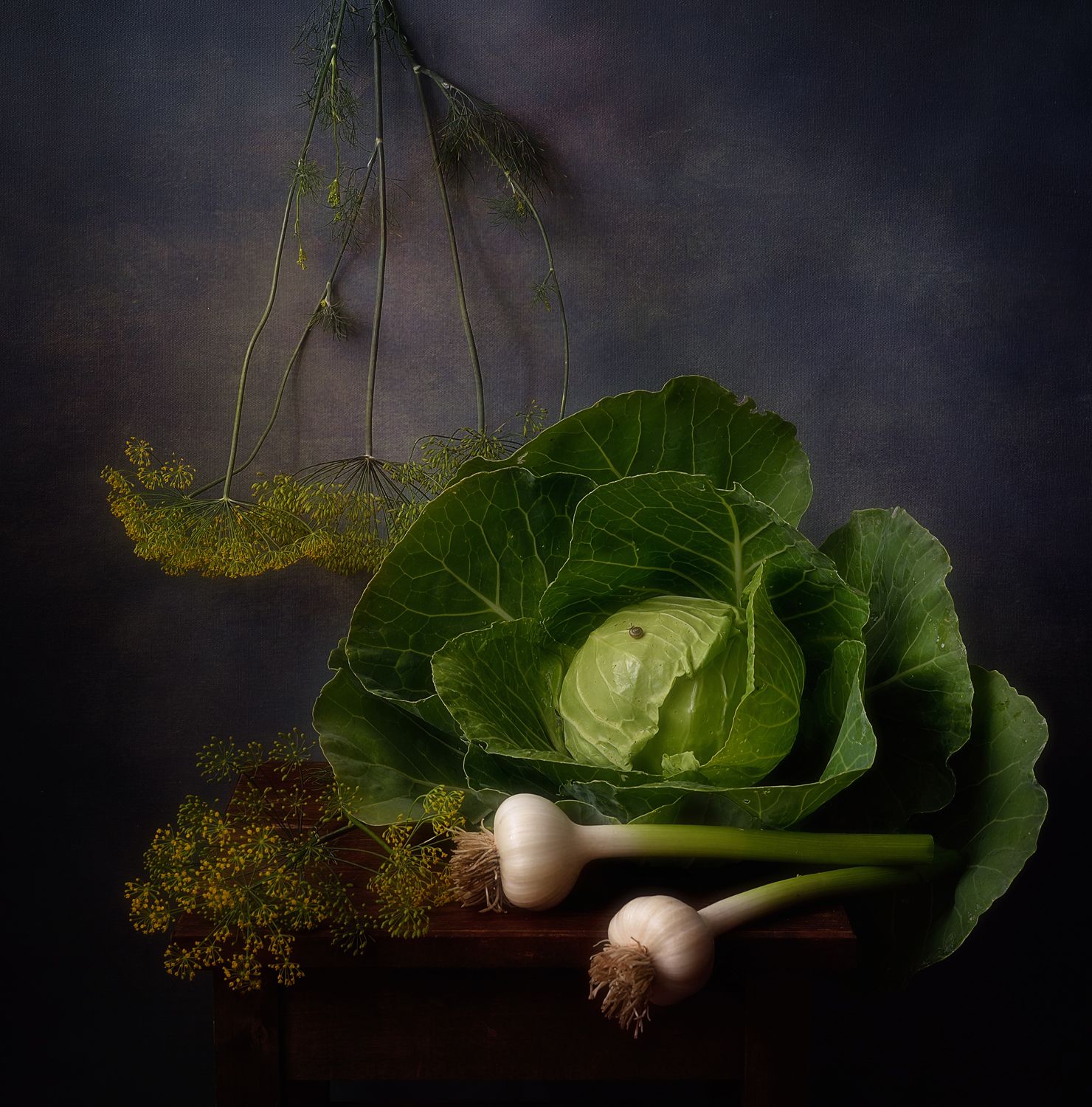 натюрморт,композиция,лето,овощи,капуста,чеснок,укроп, Наталия К