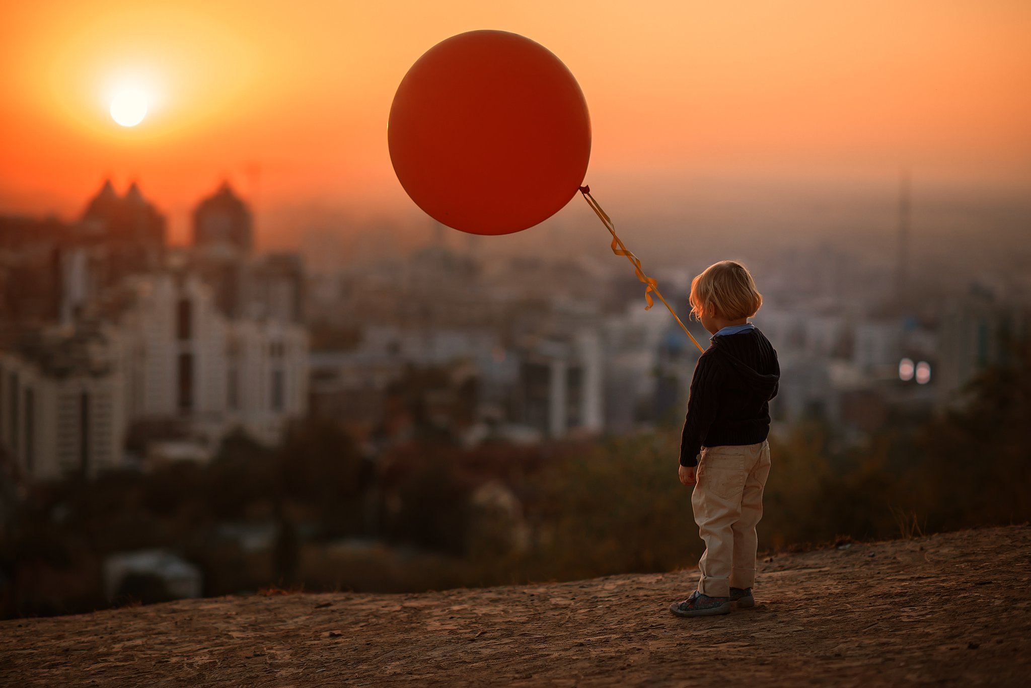 детский портрет, город, дети, сумерки, воздушный шар, на закате, Надежда Каминская