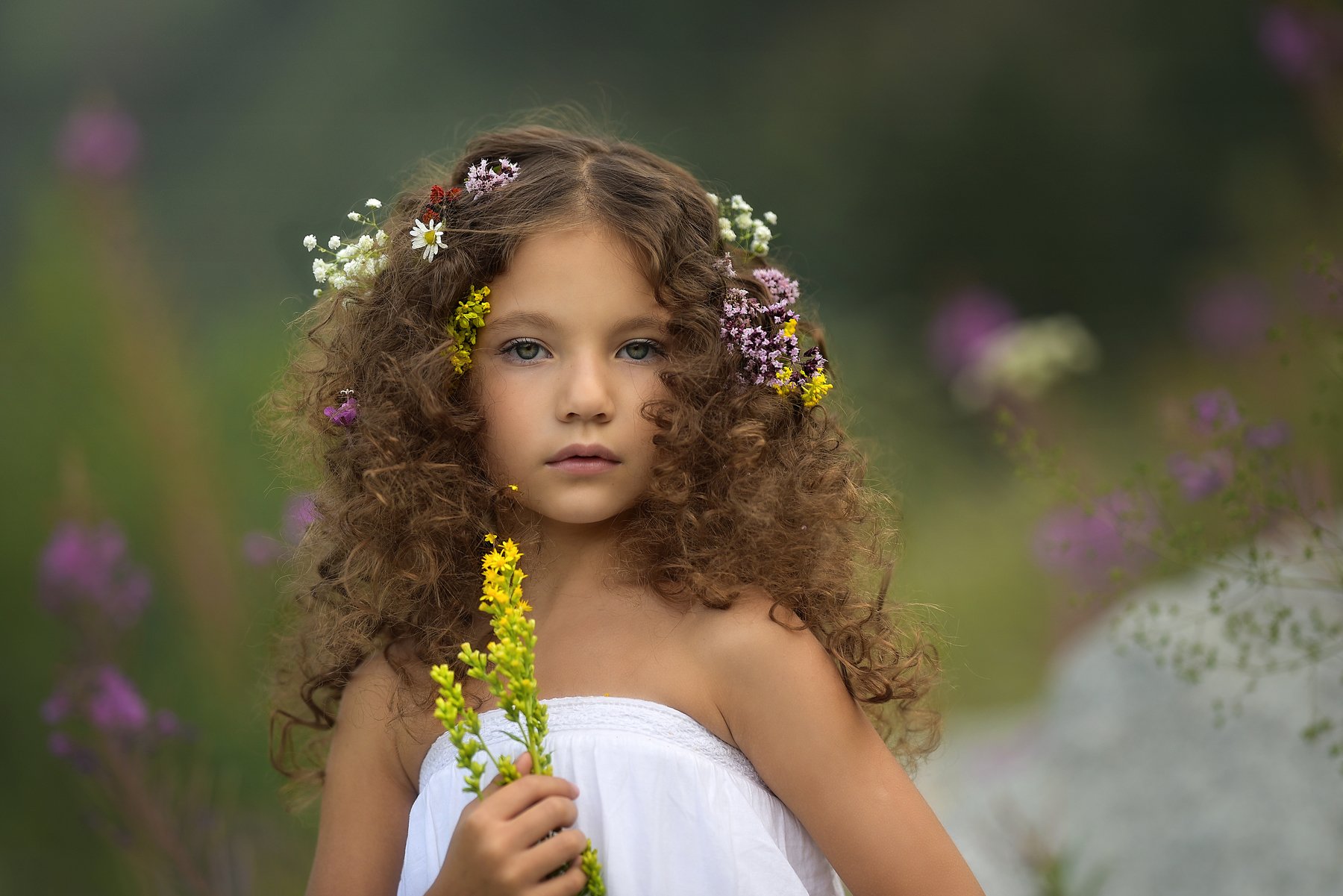 девочка, лето, в горах, детская фотография, детство, горы, цветы, цветы в волосах, Надежда Каминская