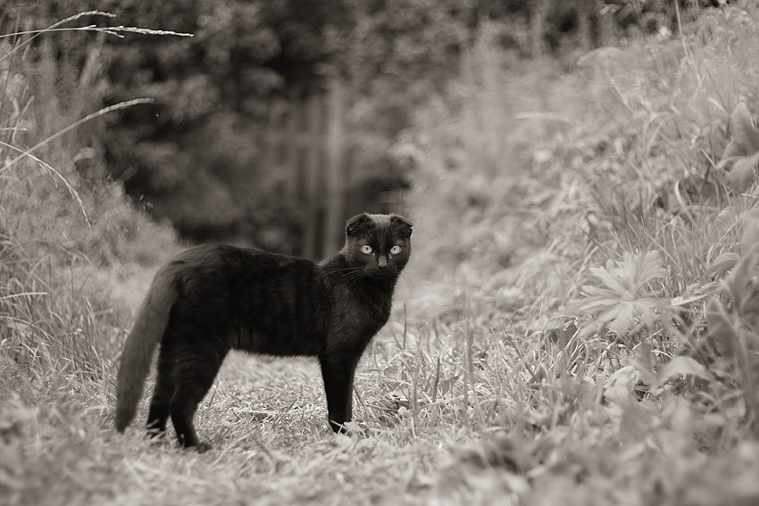 Если не ошибаюсь это помесь с Вислоухой британской кошкой. Обожаю этих созданий!! У меня у самой дома живет такая,черная,только вот уши от мамы прямые достались =)