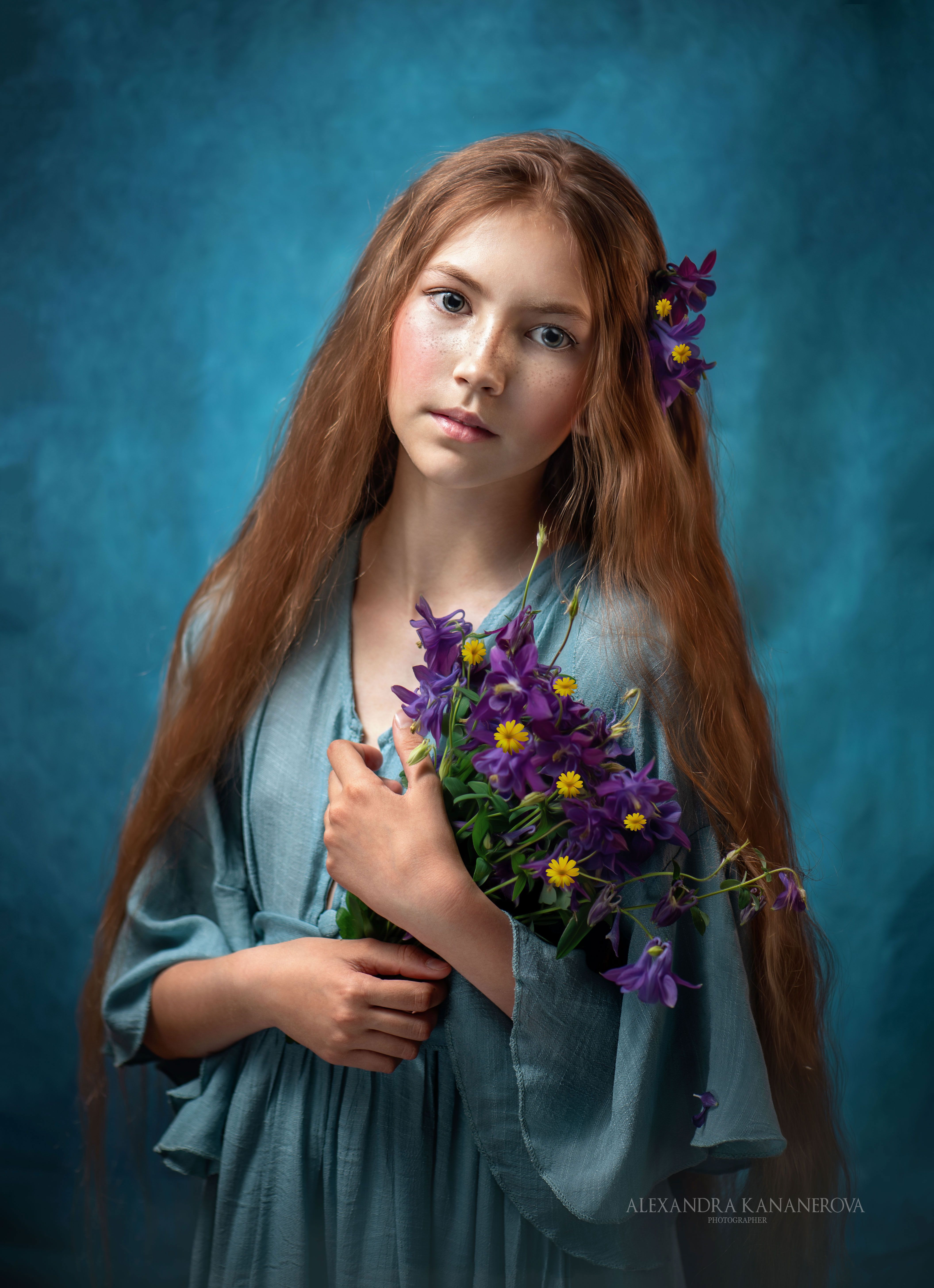 портрет, дети, цветы, Александра Кананерова